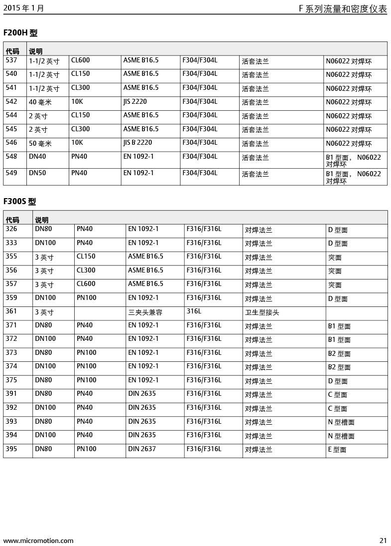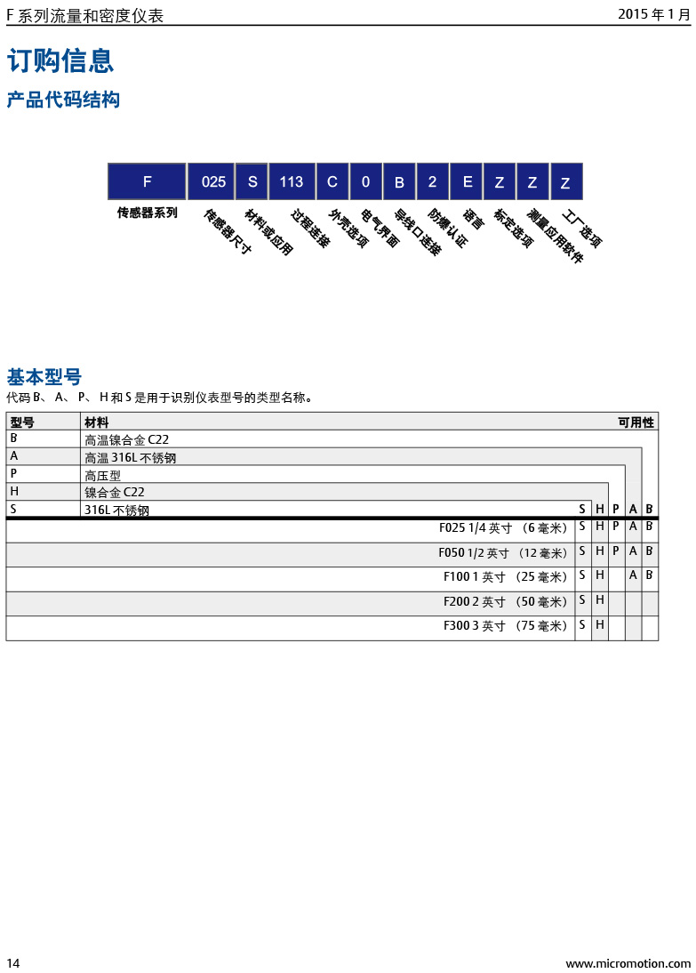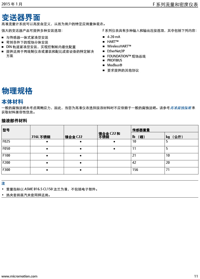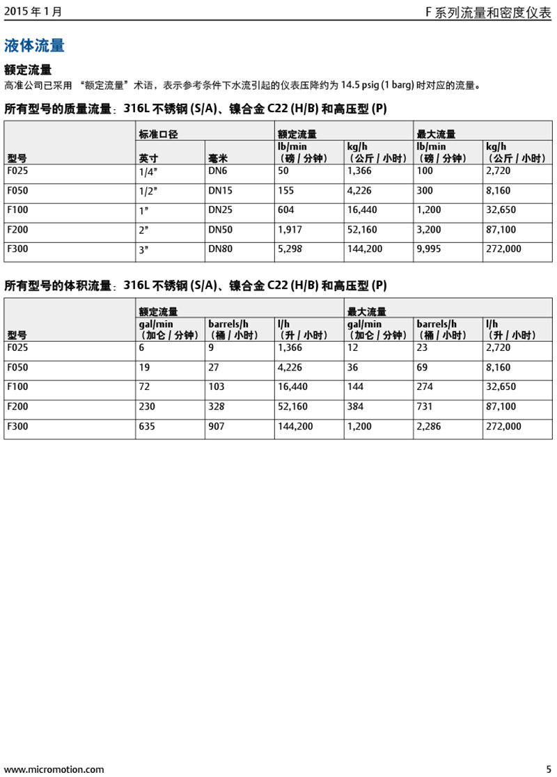 型號:高準 (Micro Motion®) F 系列