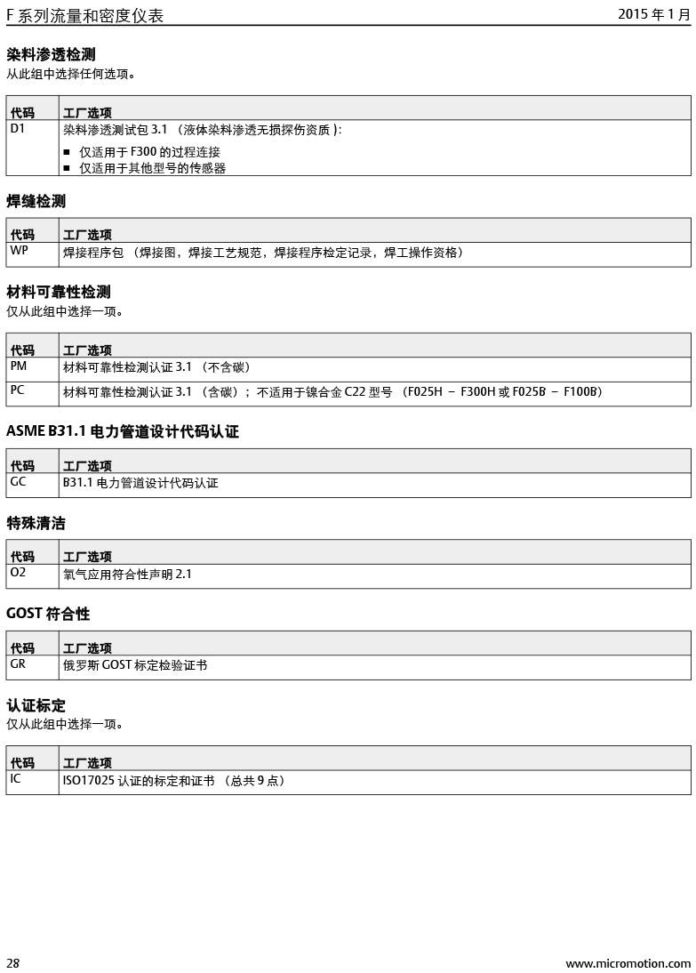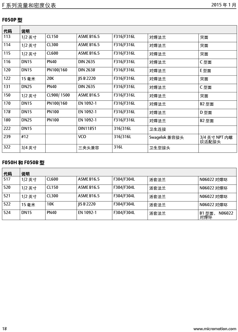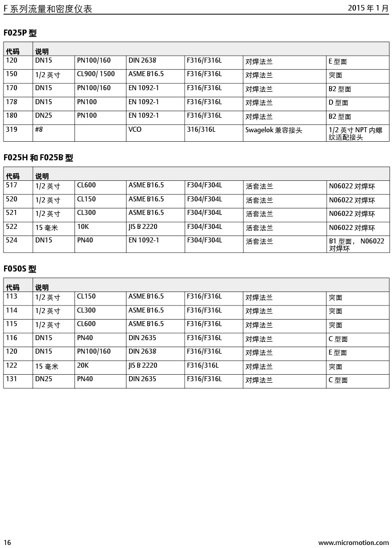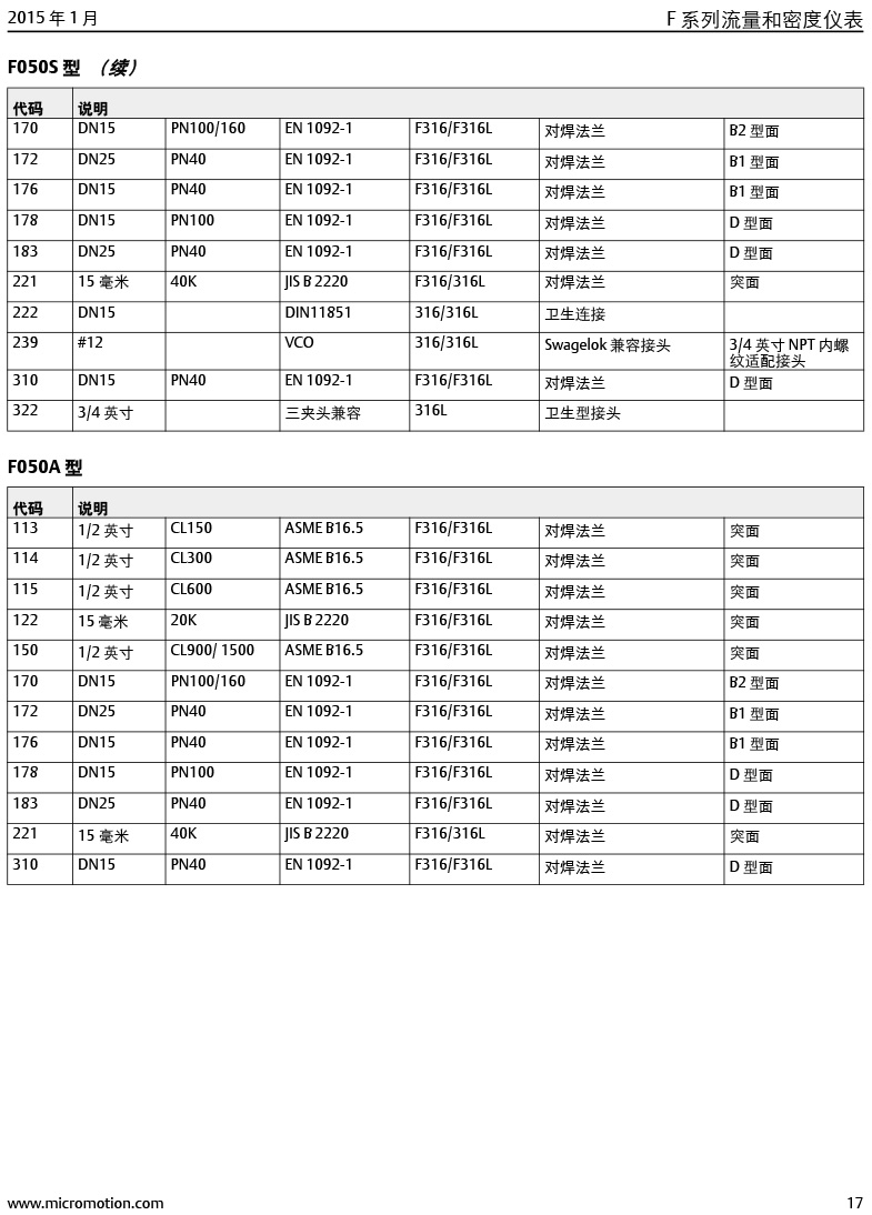 型號:高準 (Micro Motion®) F 系列