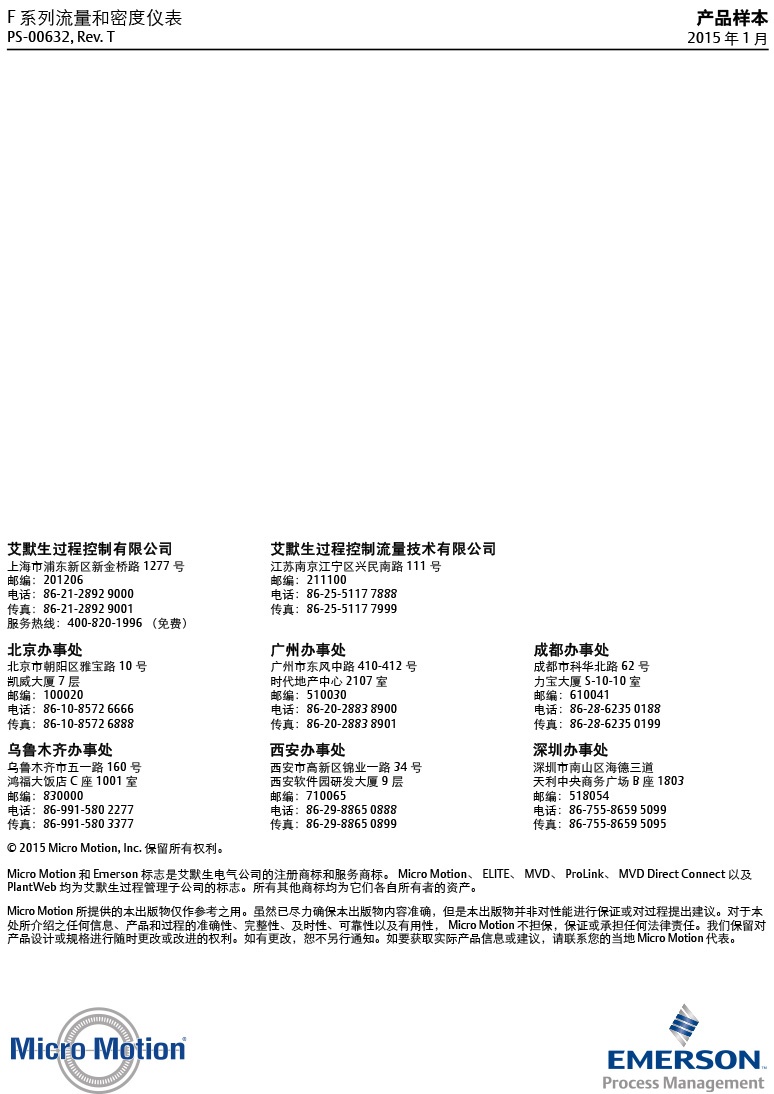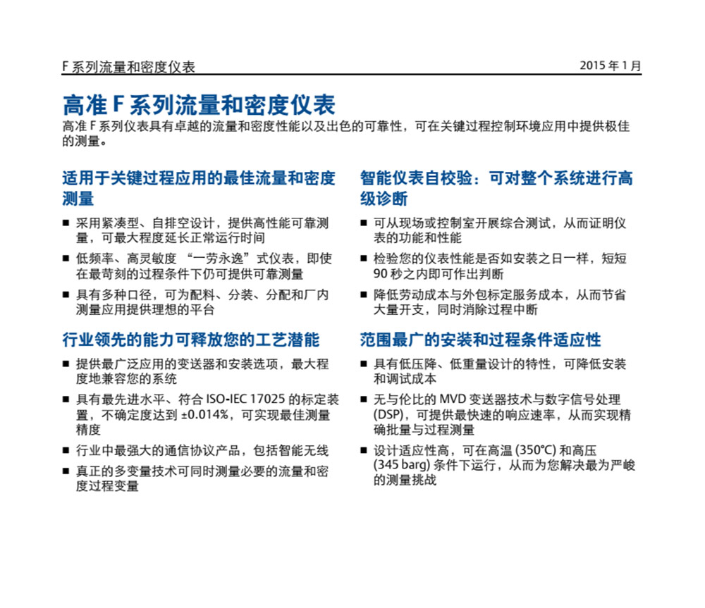 名稱:高準 (Micro Motion®) F 系列流量和密度儀表