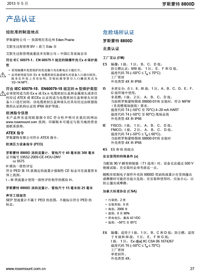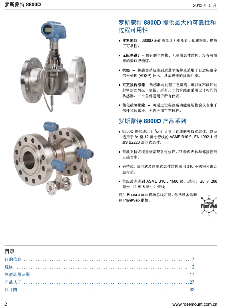 名稱:羅斯蒙特 8800D 系列渦街流量計